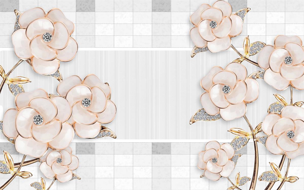 درخت پر پیچ و خم طلایی و پرندگان 3 بعدی