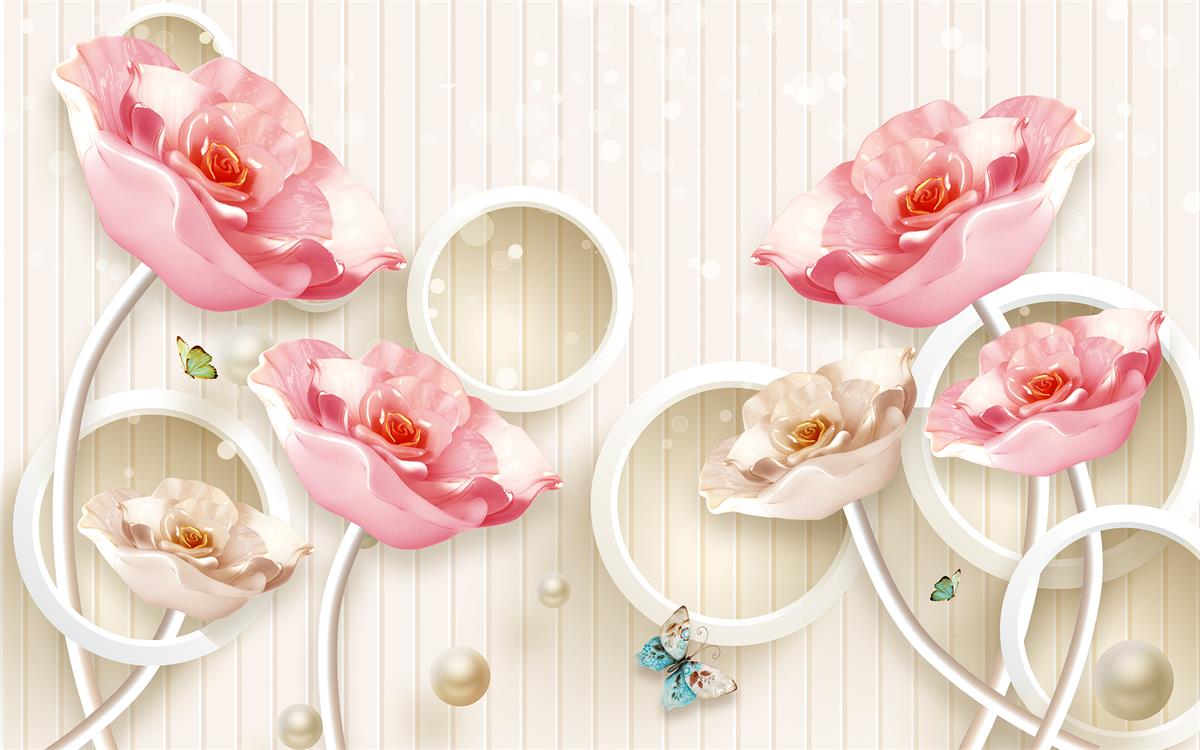 گلهای صورتی با زمینه حلقه