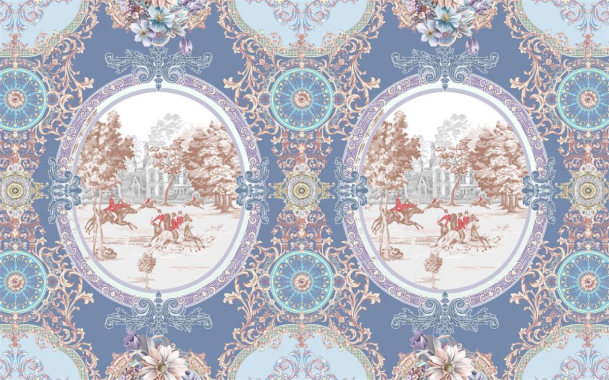 گلهای دور طلایی با زمینه کاغذ دیواری