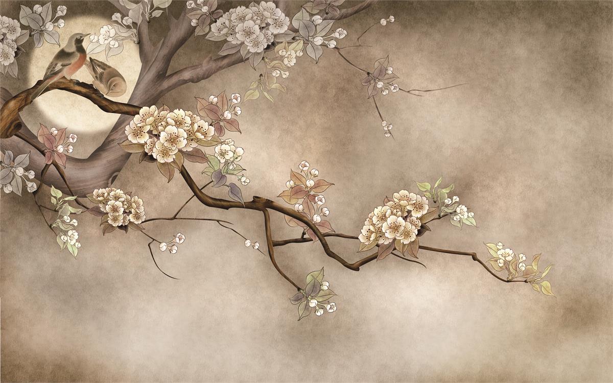 شاخه پر گل و پرنده ها