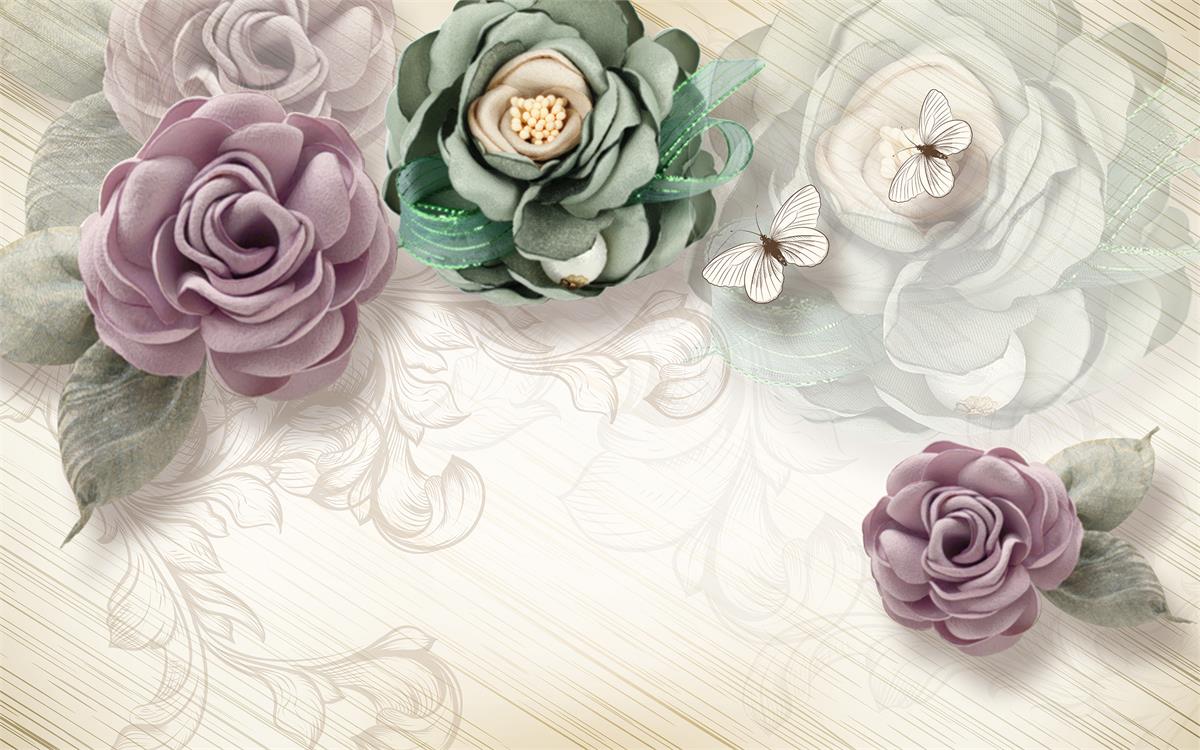 گلهای سفید با پروانه ها