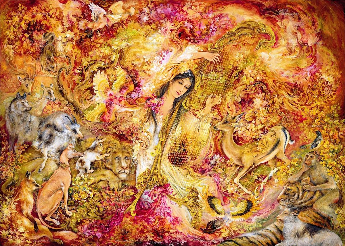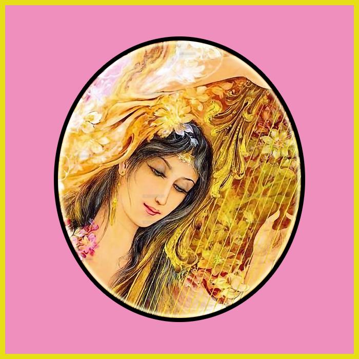 نقاشی مینیاتوری اثر استاد فرشچیان (چنگ نواز )