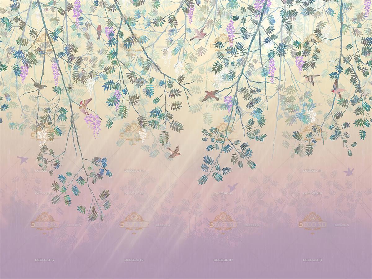 شاخه های آویز و پرندگان جنگلی با سایه در زمینه