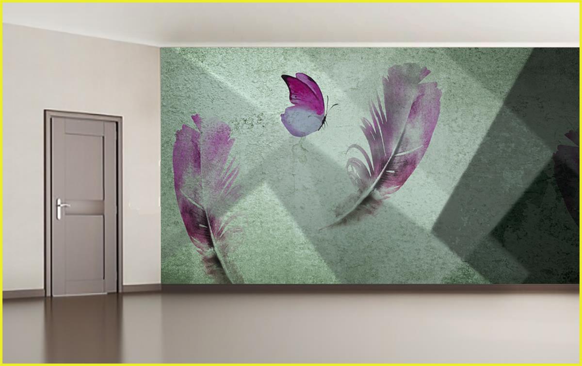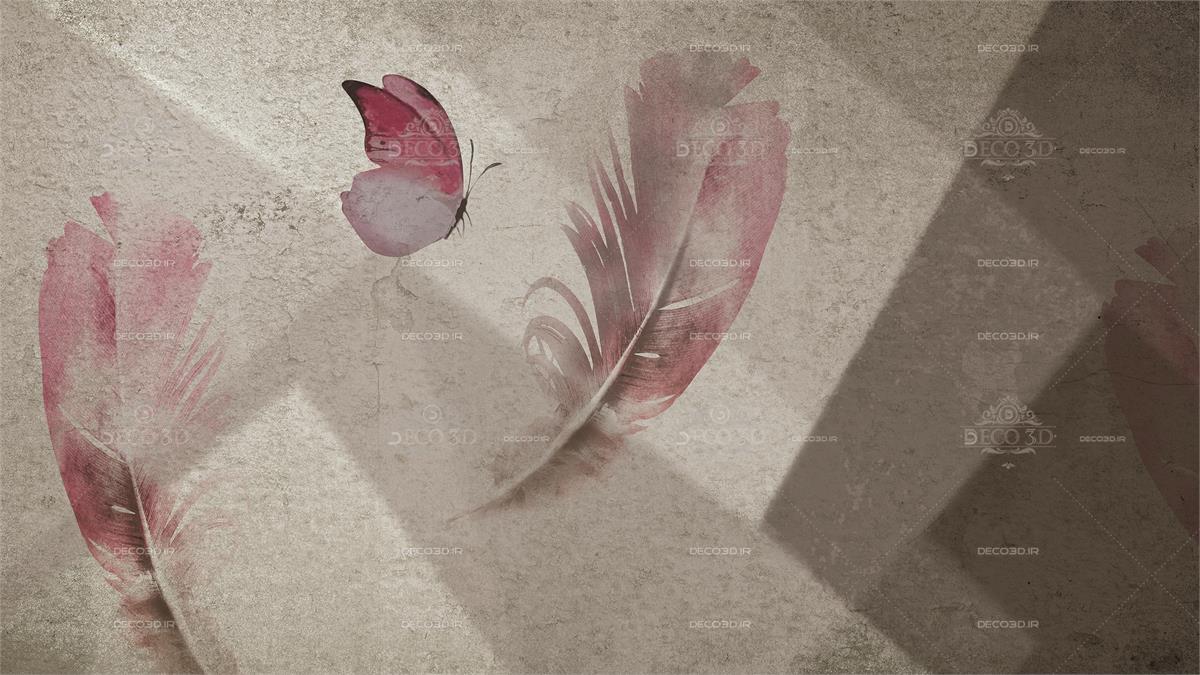 پروانه و پر سرخ با زمینه خاکستری