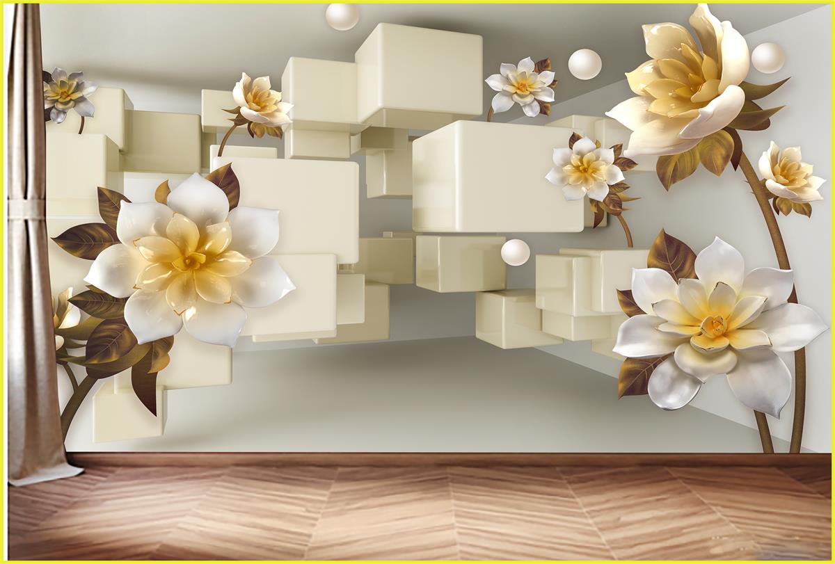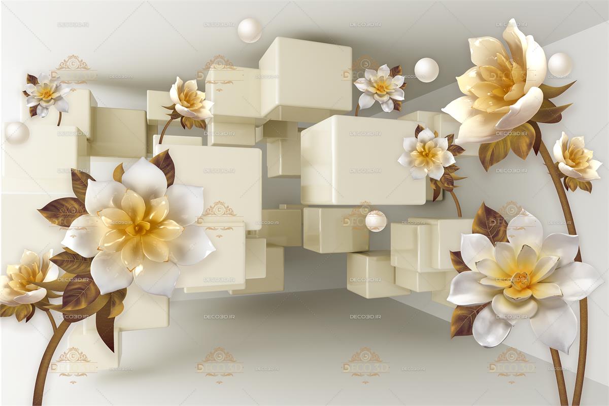 گلهای ساقه بلند با زمینه مکعب ها و سه بعدی