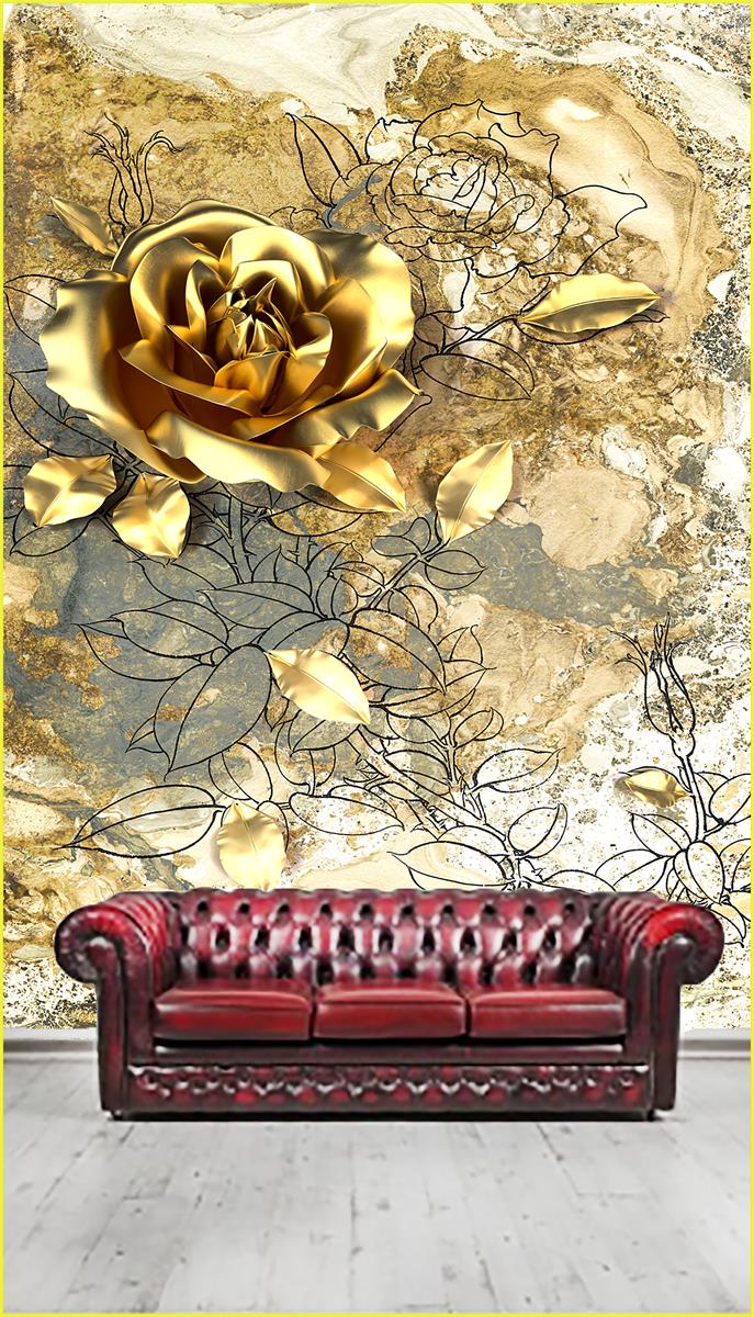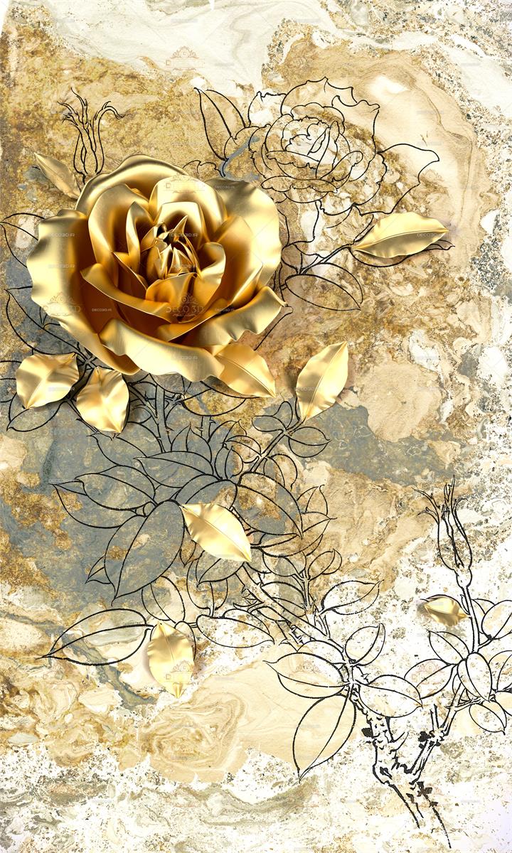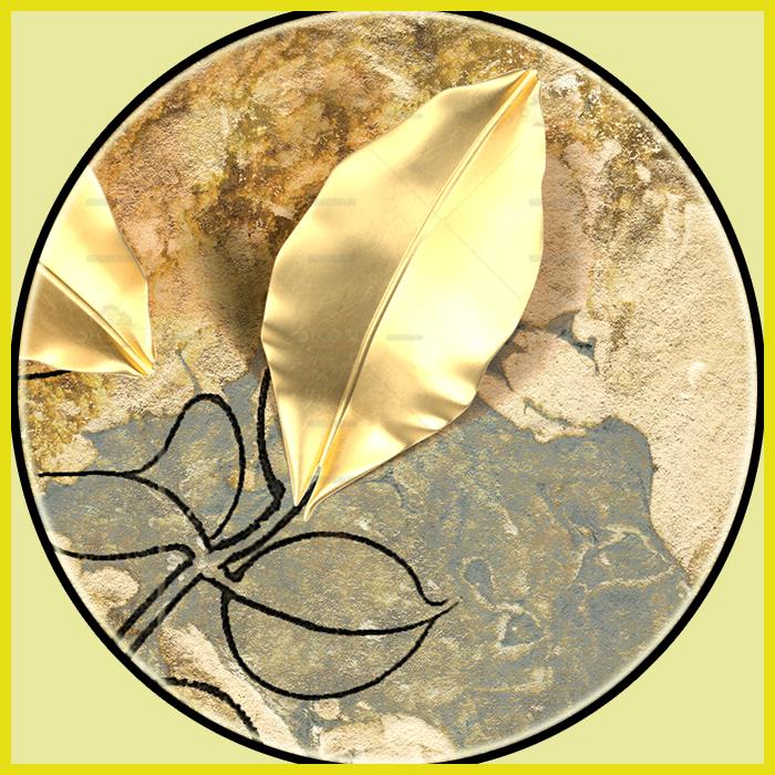تک گل طلایی با زمینه درآمیخته و خطوط برگها
