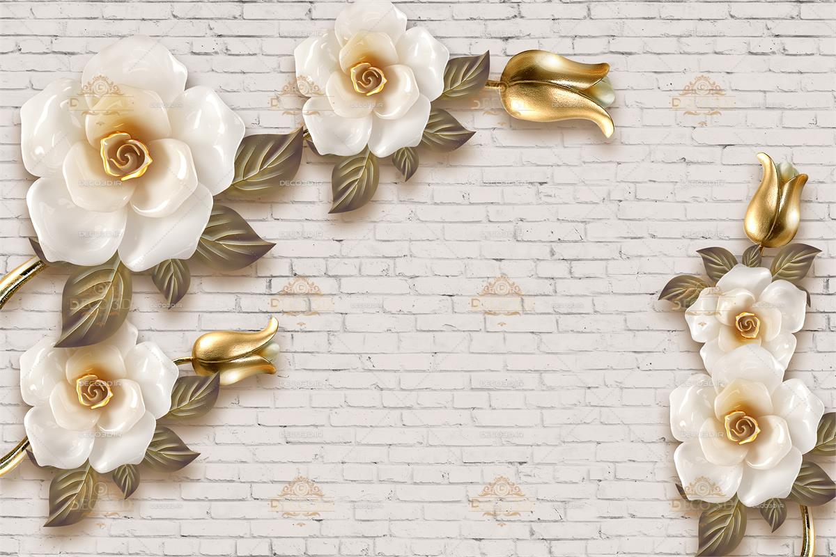 گلهای سفید و برگهای آویزان سه بعدی