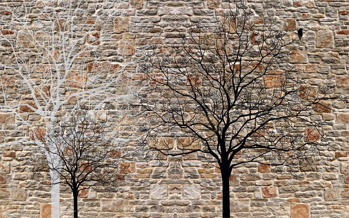 سایه سیاه سفید درختان بی بار و عریان
