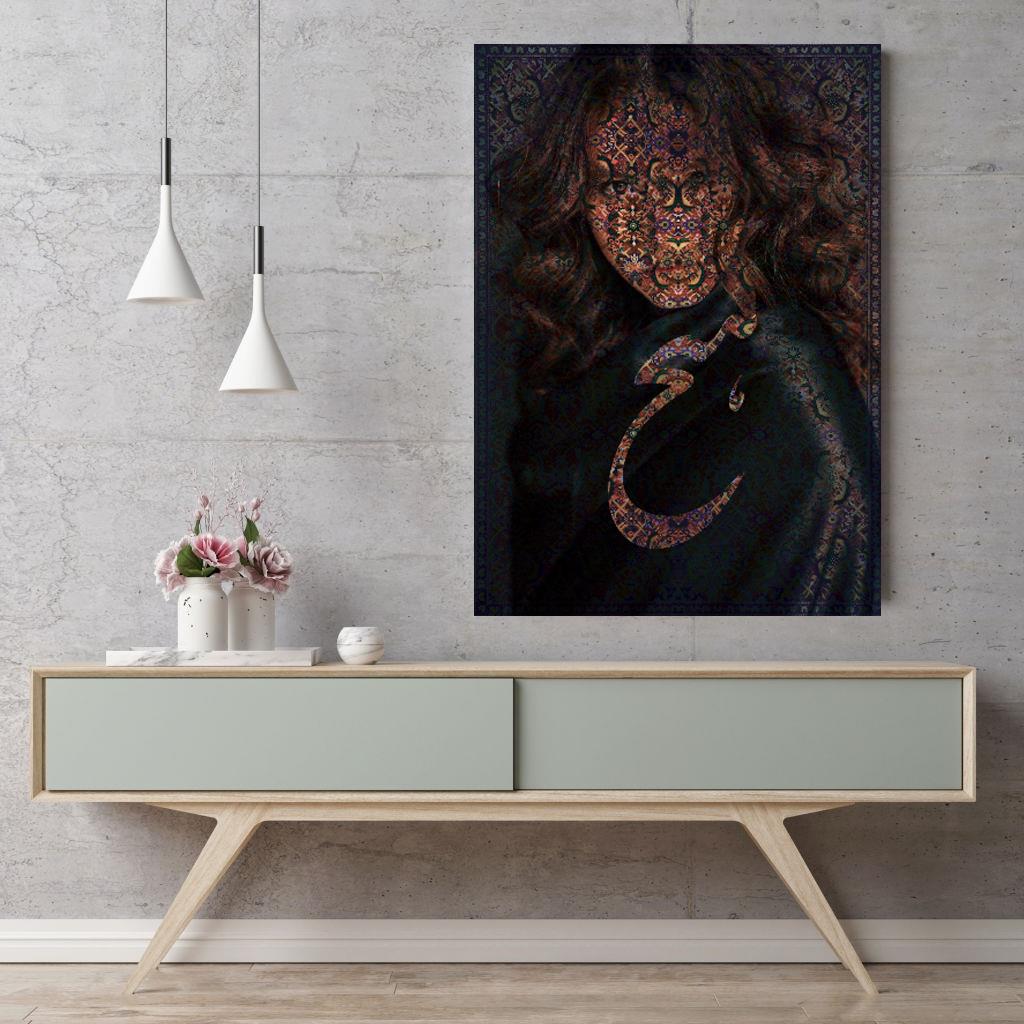 چهره منقوش دختری که چشمهایش دیده می شود و در عمق نگاهش تنها ، هیچ و پوچ فریاد می کند