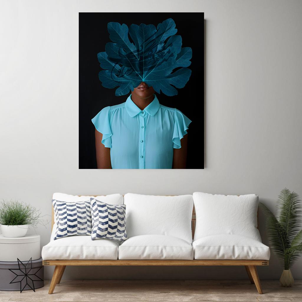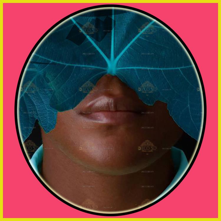 دختر فیروزه پوش که صورتش را برگی پوشانیده و نماد حیات و زندگی می باشد