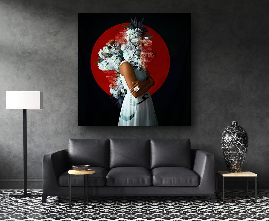 دختر گل به سر در دایره قرمز عشق منتظر می باشد - تفاوت رنگ ها و تنوع آنها جذابیت خاصی به طرح بخشیده است