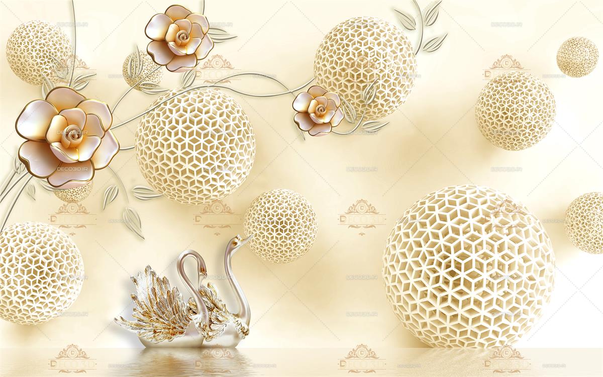 قوهای طلایی و گلهای رز خمیری و گوی های مشبک معلق و برگهای فلورال