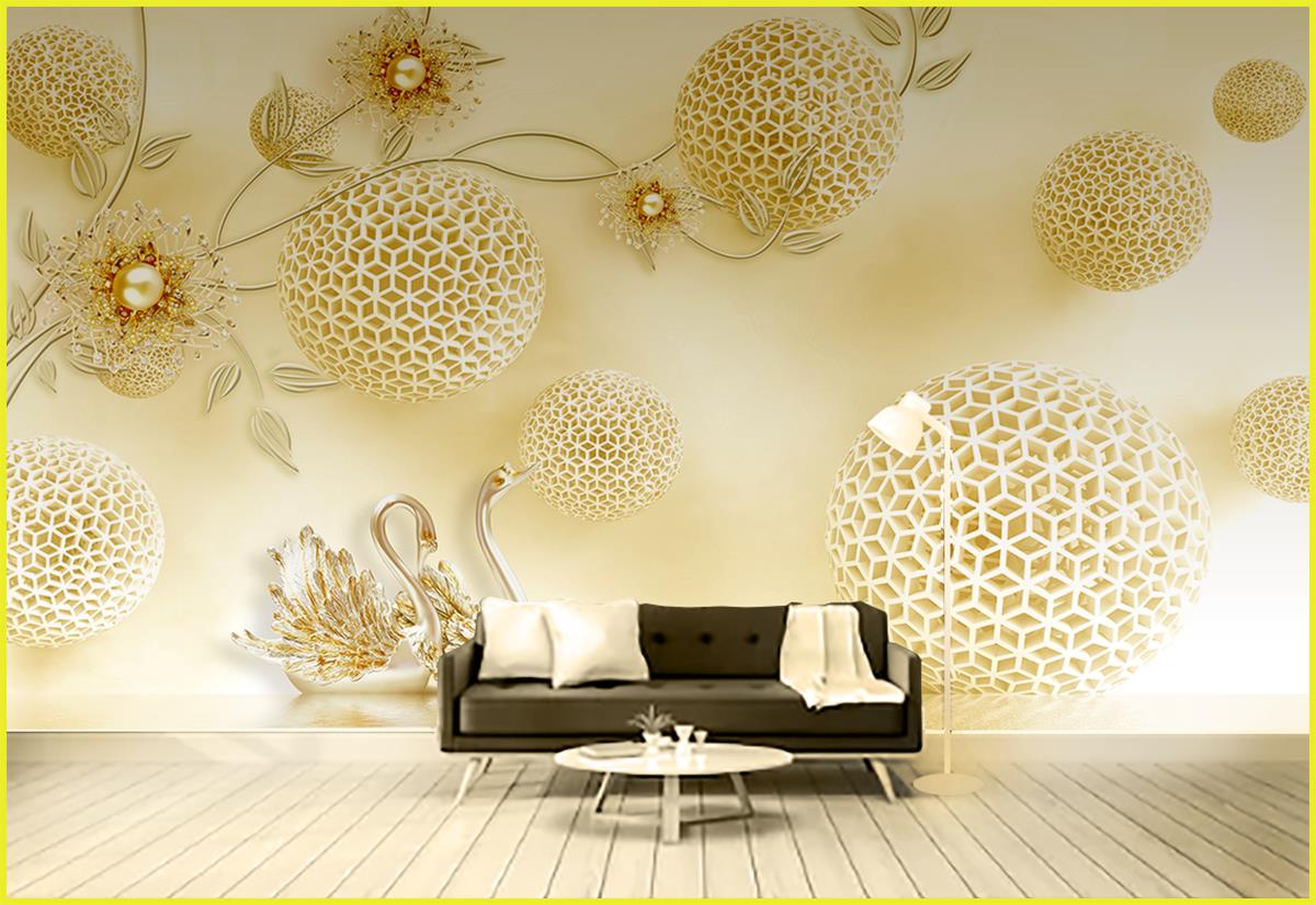 گلهای نقره طلا وقوهای طلایی با زمینه گوی های مشبک معلق