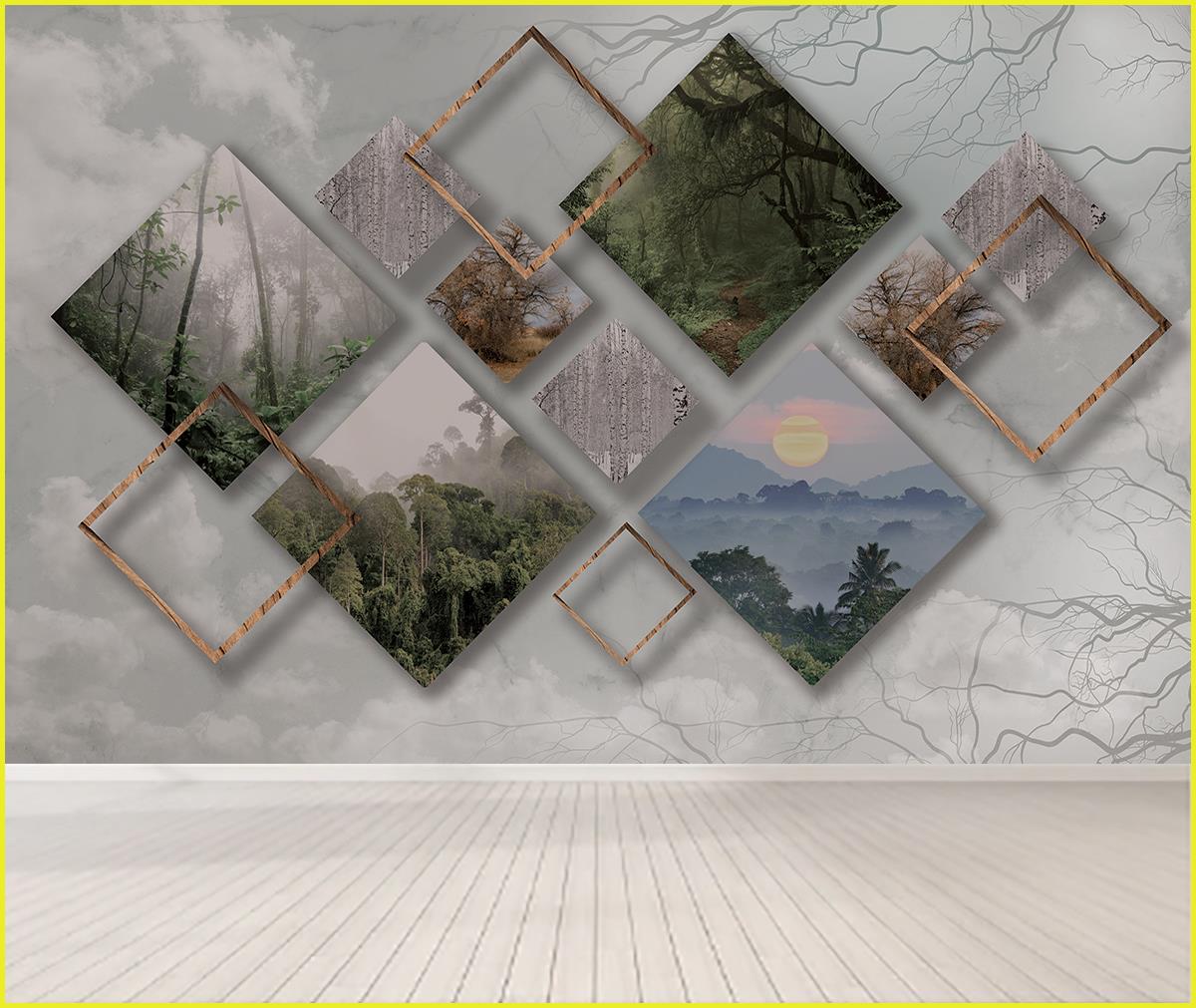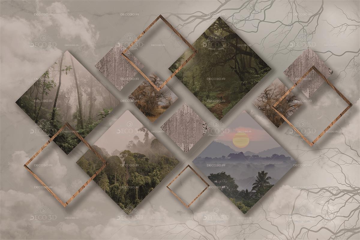 مناظر طبیعت در قابهای مختلف با زمینه مات درختان