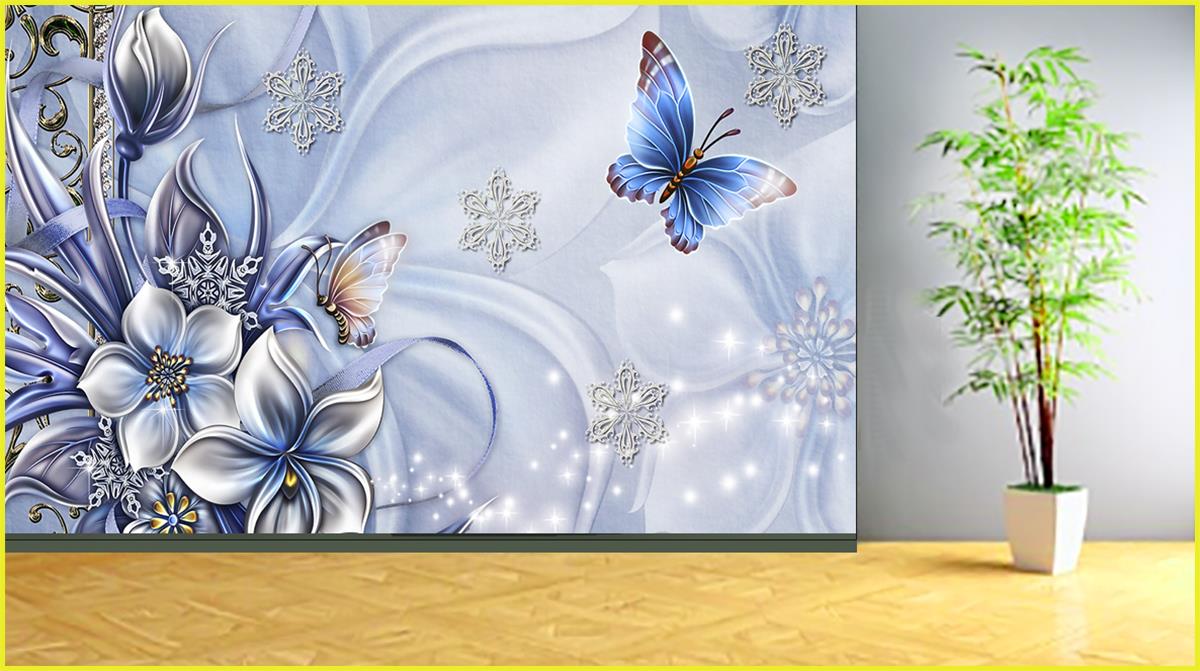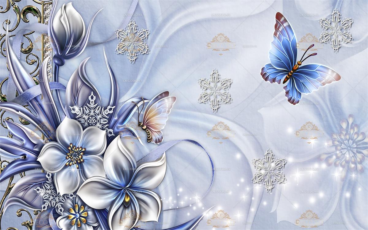 گلهای رز سفید و پروانه های سفید با زمینه پارچه کرمی