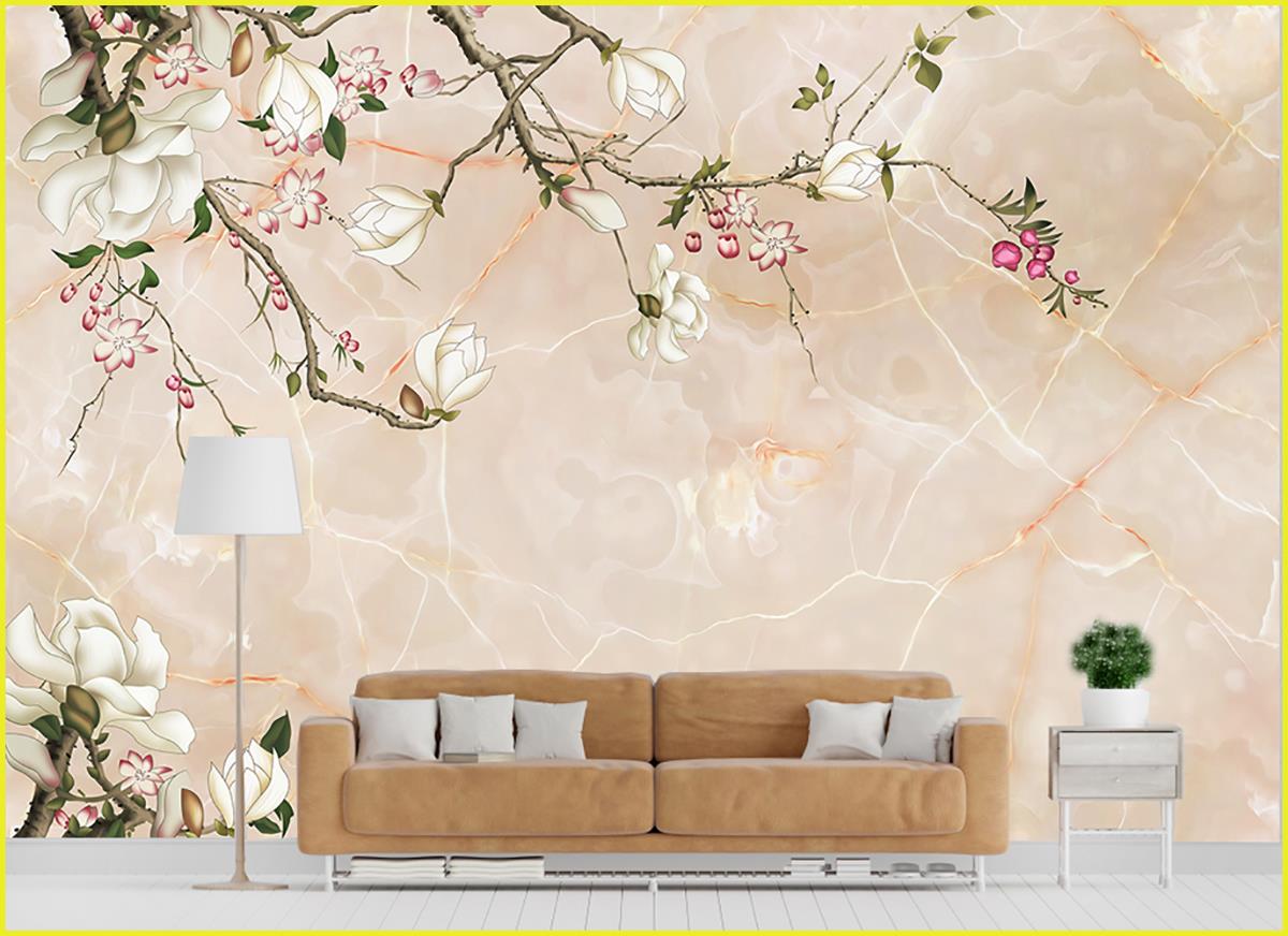 گلهای پنج پر یاسی نگین دار با زمینه مکعب ها