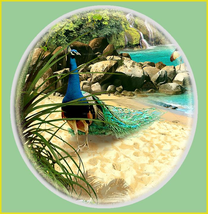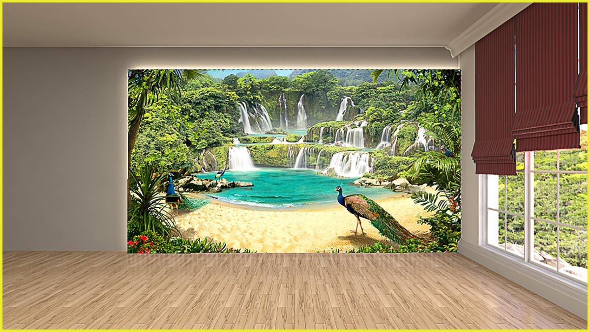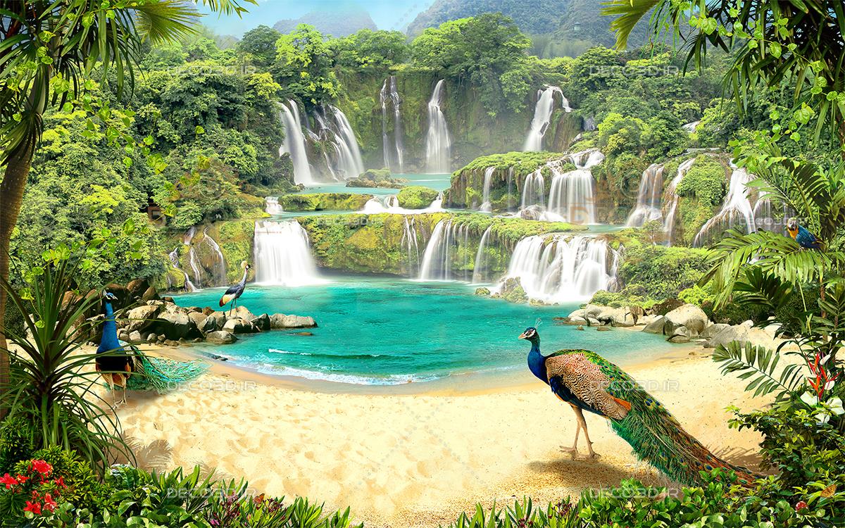 طاووس ها و آبشار