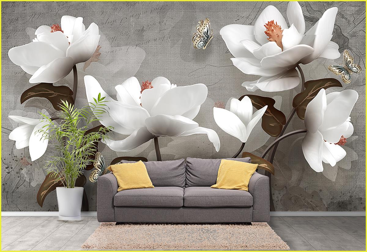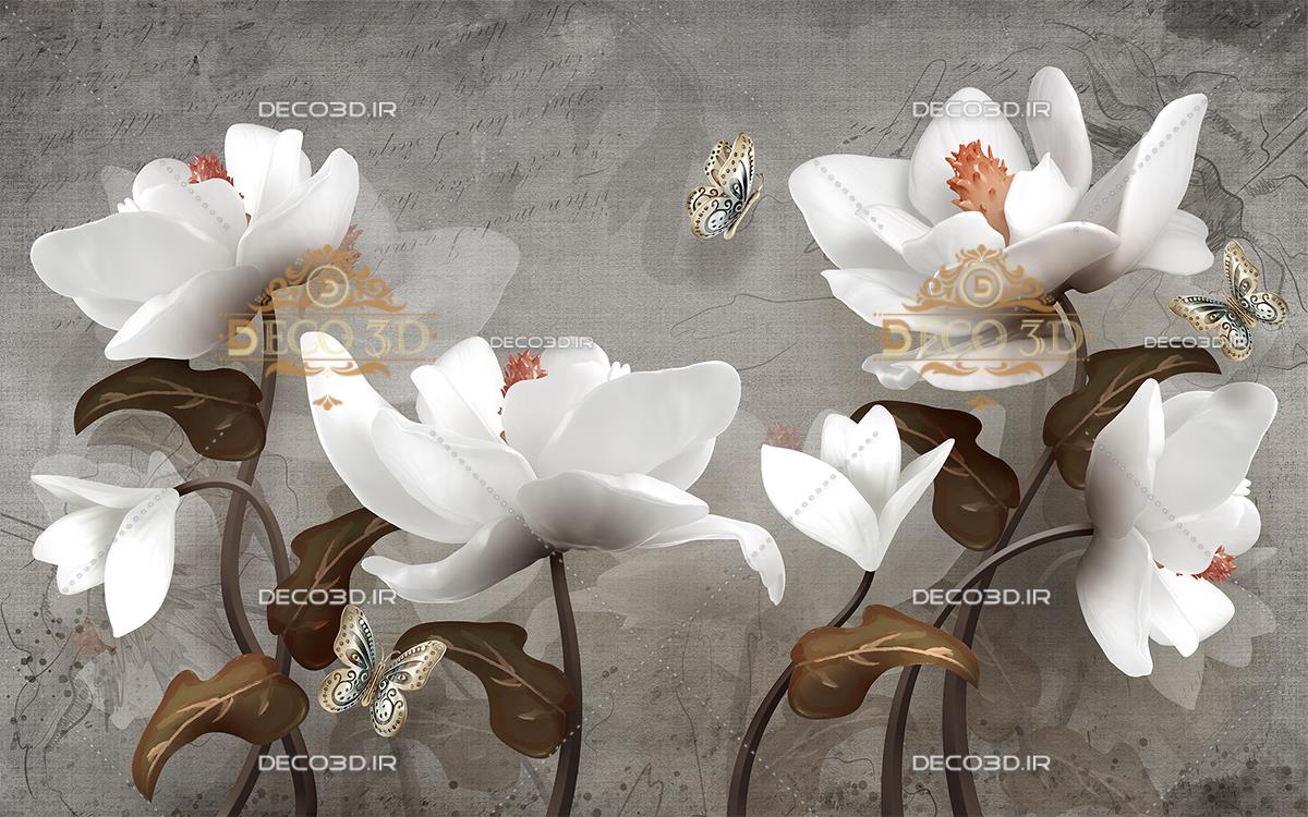 گلهای سفید رقصان و پروانه ها