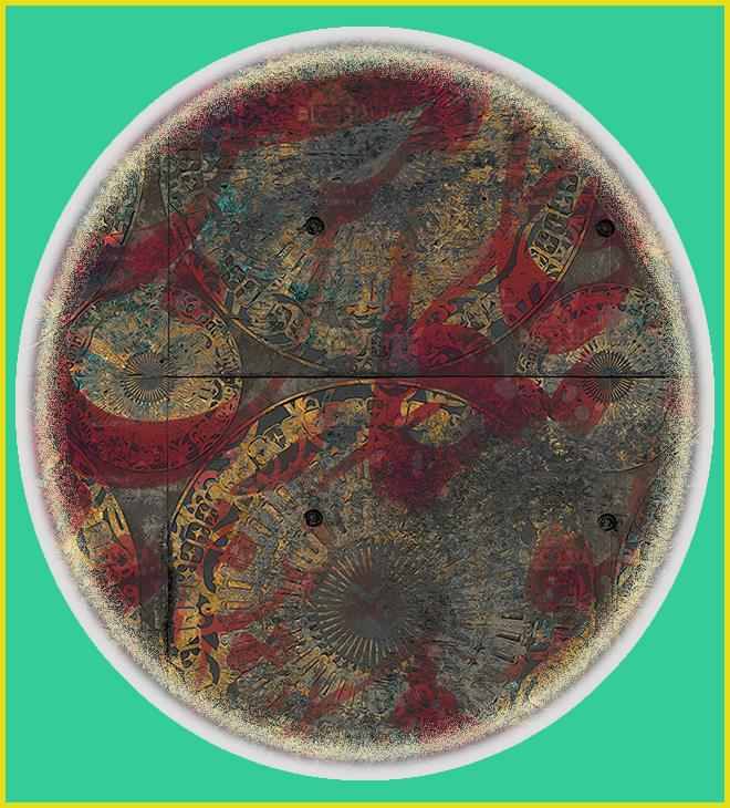 سیاه مشق با خط شکسته نستعلیق در طرح شمسه با زمینه قهوه ای