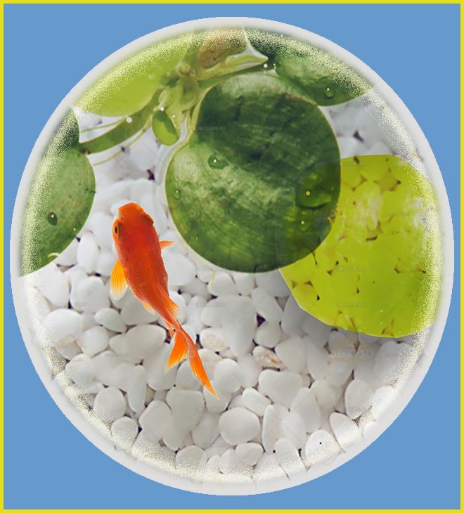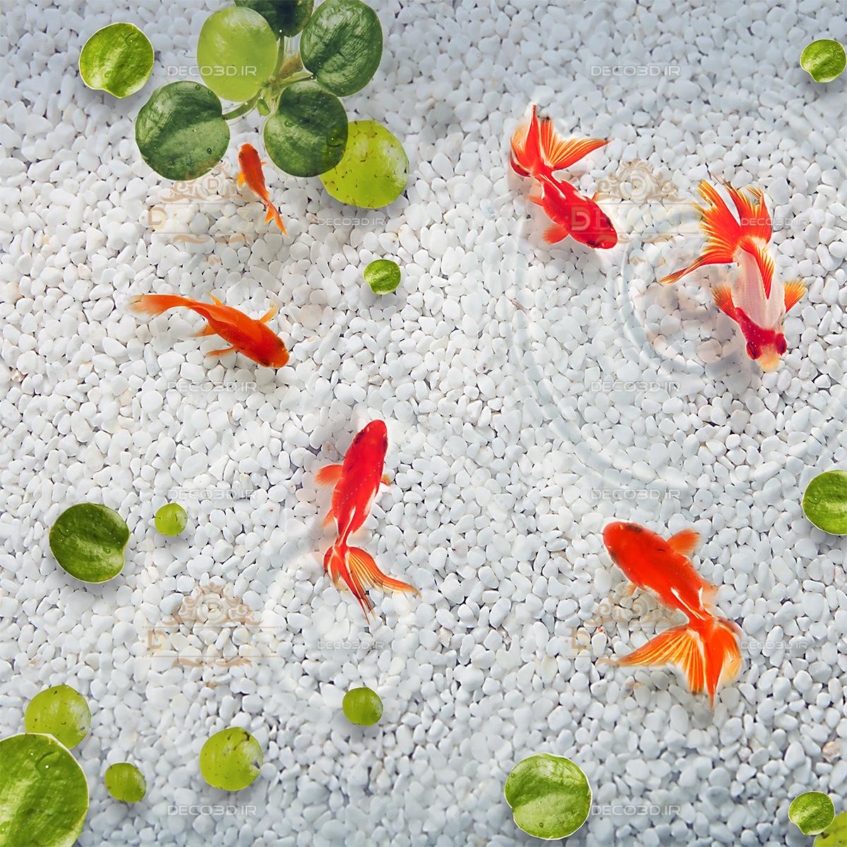 ماهی قرمز و سنگریزه سفید Goldfish and white pebbles
