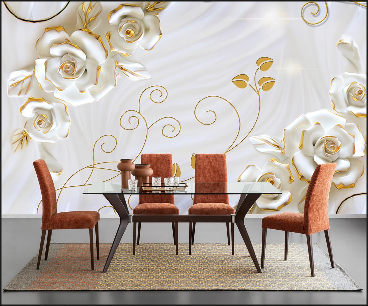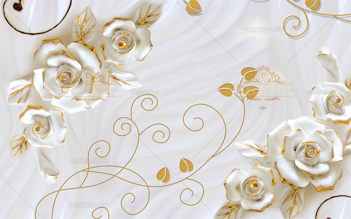 رز دور طلایی با برگهای فلورال Golden round rose with floral leaves