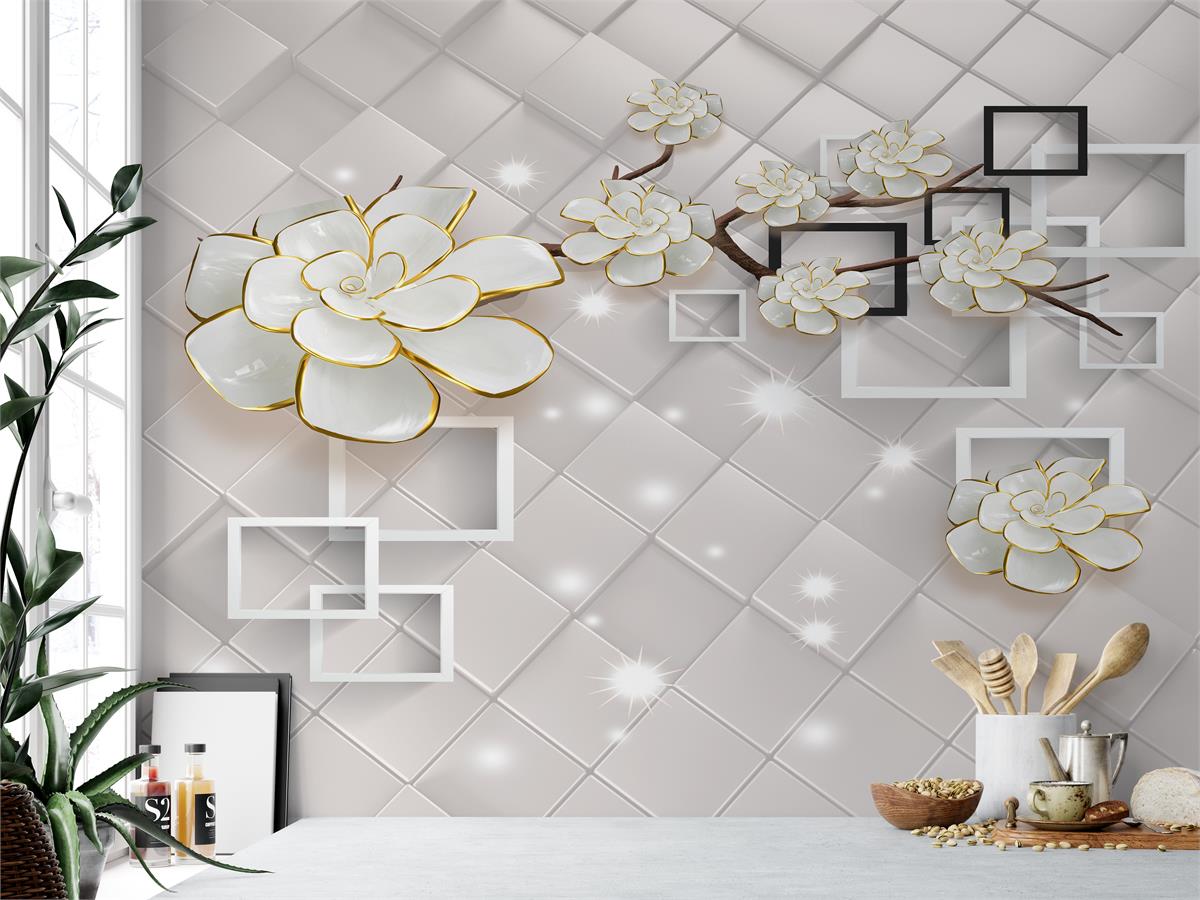 گلهای بلورین رنگارنگ برجسته با پروانه ها