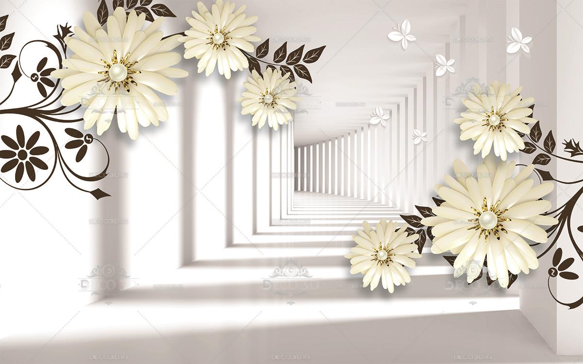گلهای رز سفید و پروانه های سفید با زمینه پارچه کرمی