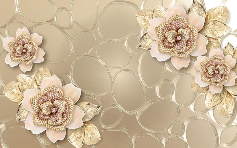 گلهای پنج پر ریز و برگهای فلورال با زمینه دایره ای