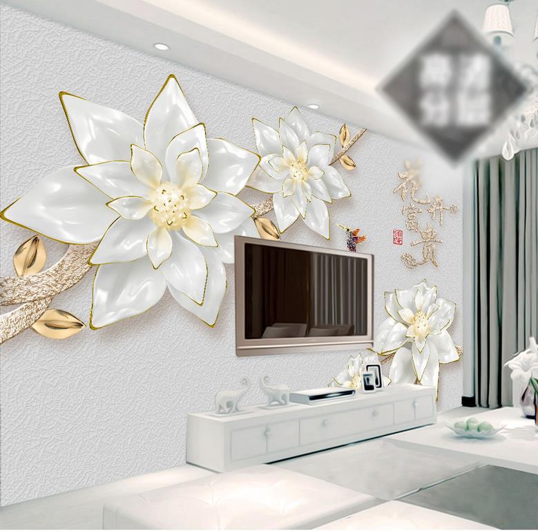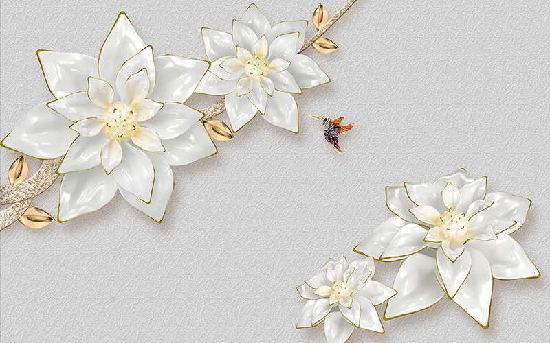 گل های دایره ای و غنچه ها با زمینه ساده برجسته