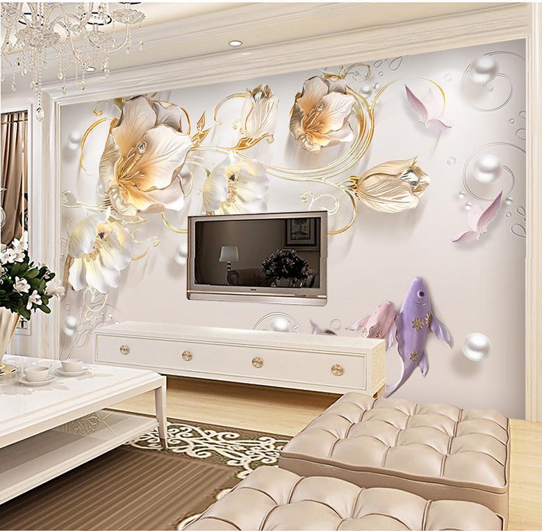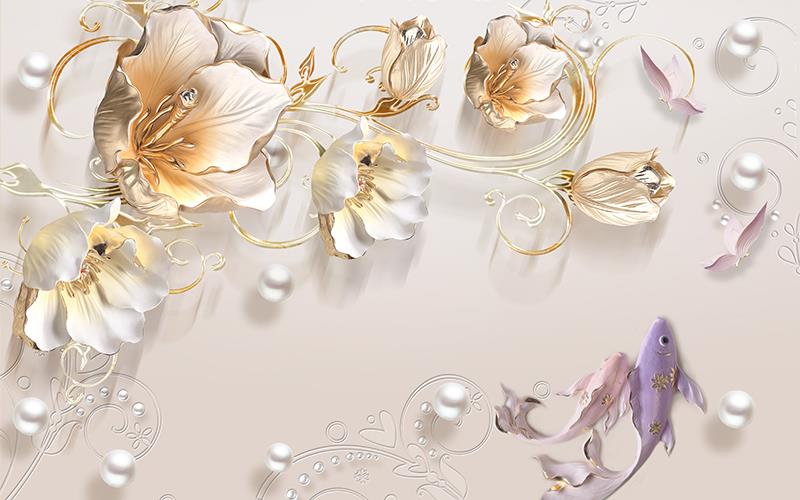 ماهی های نقش دار و گل ها