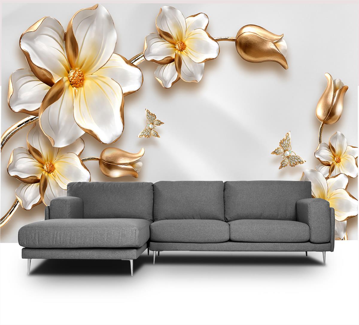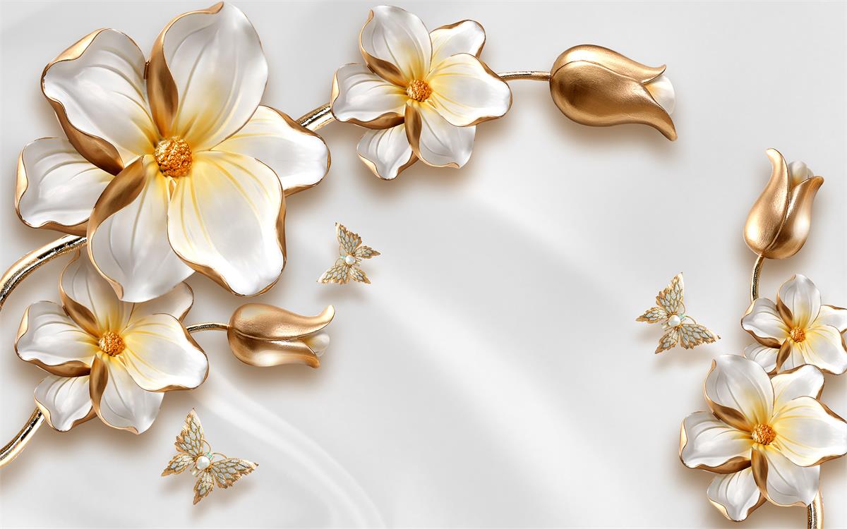 گل های پنج پر 3بعدی با پروانه ها
