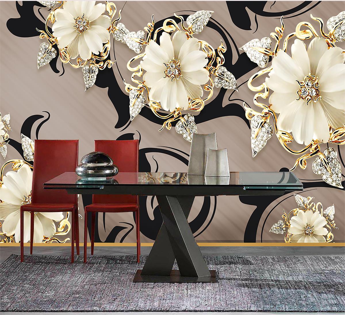 گلهای طرح چینی طلایی
