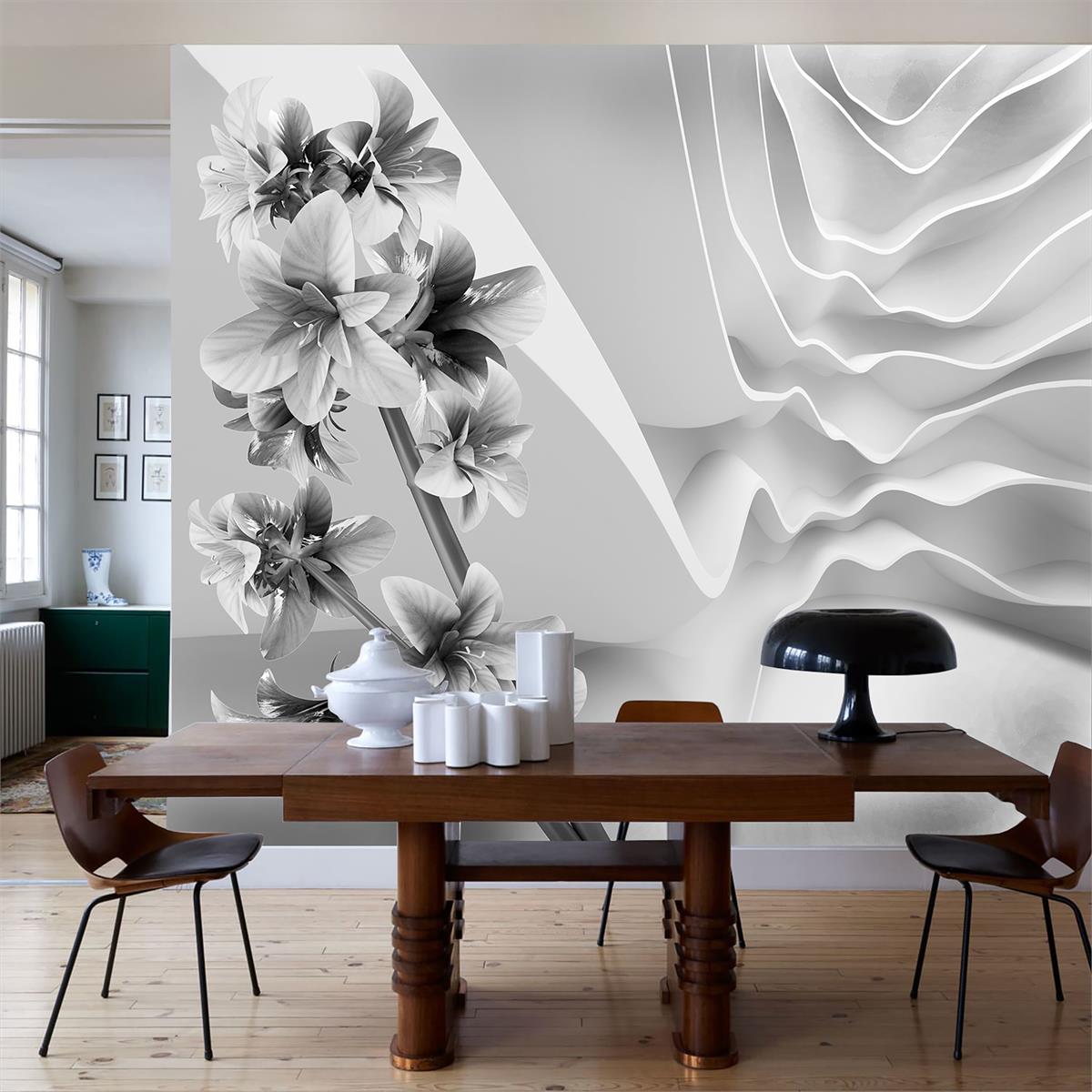 Flower branches and wavy walls