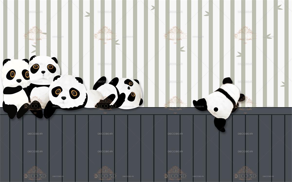 پانداهای عروسکی با پس زمینه نقش بامبو
