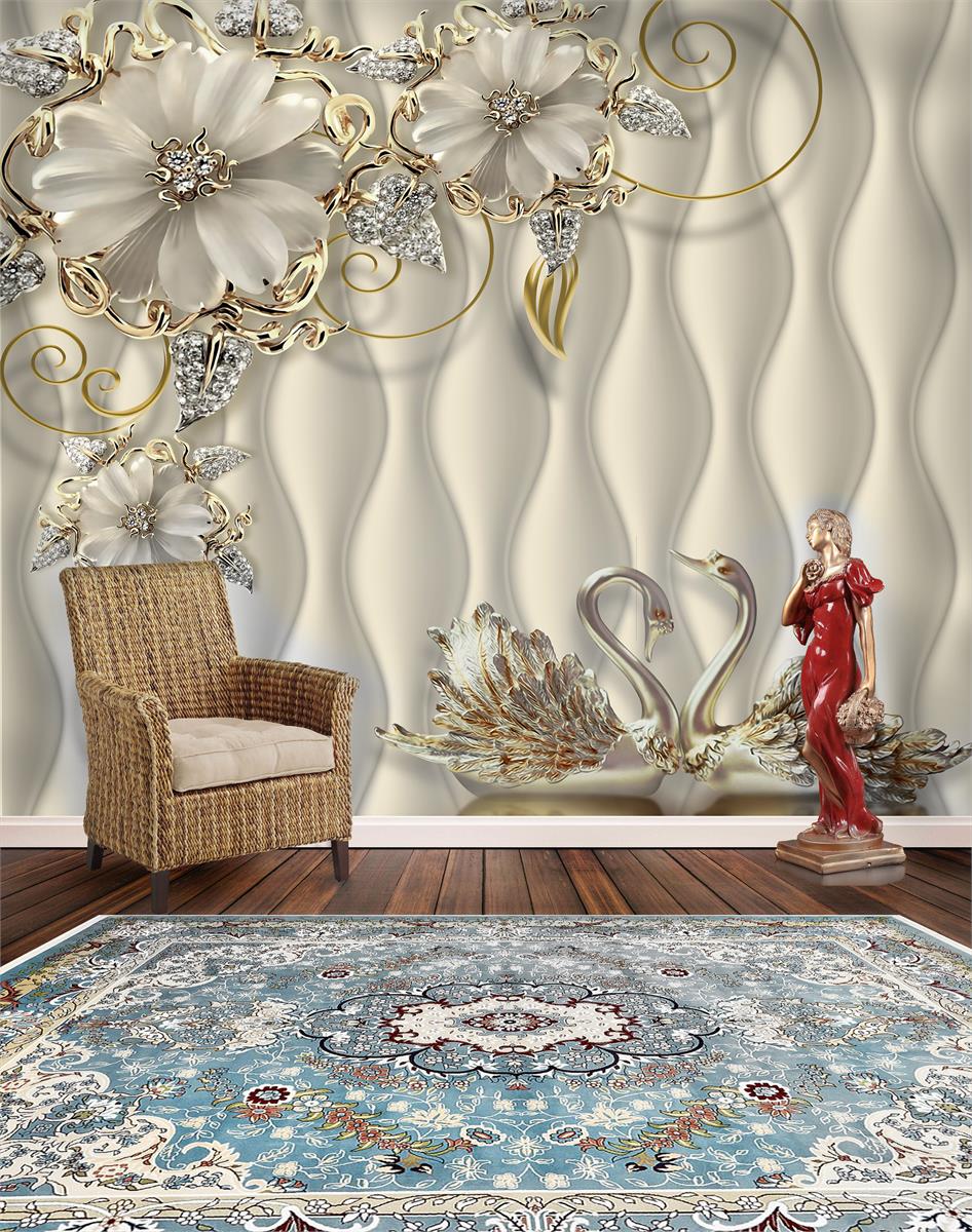 گلهای دور طلایی و قوها