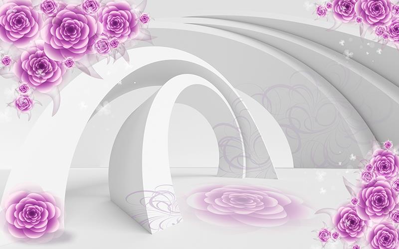 گلهای صورتی با برگهای فلورال و زمینه دایره ای
