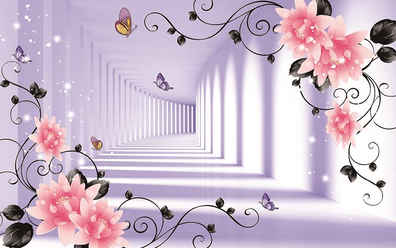 گلهای صورتی و برگهای فلورال با زمینه ژرف نمایی (پرسپکتیو)