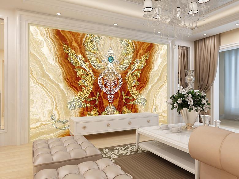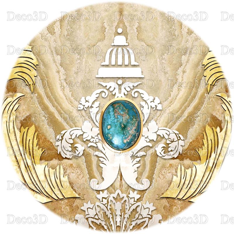 تاج طلایی با نگین آبی با زمینه مرمر