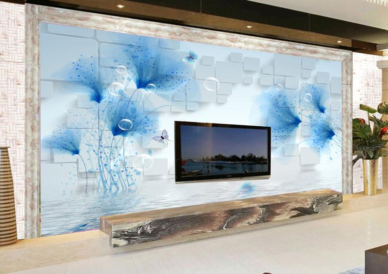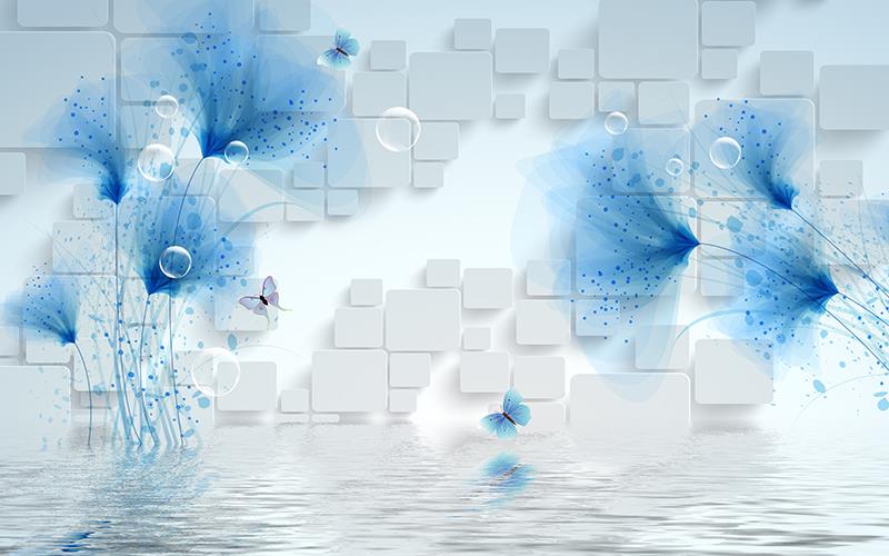 گلهای شفاف آبی با زمینه مکعب
