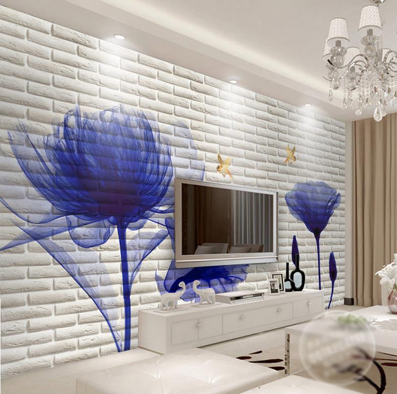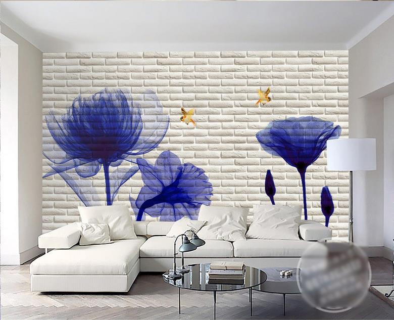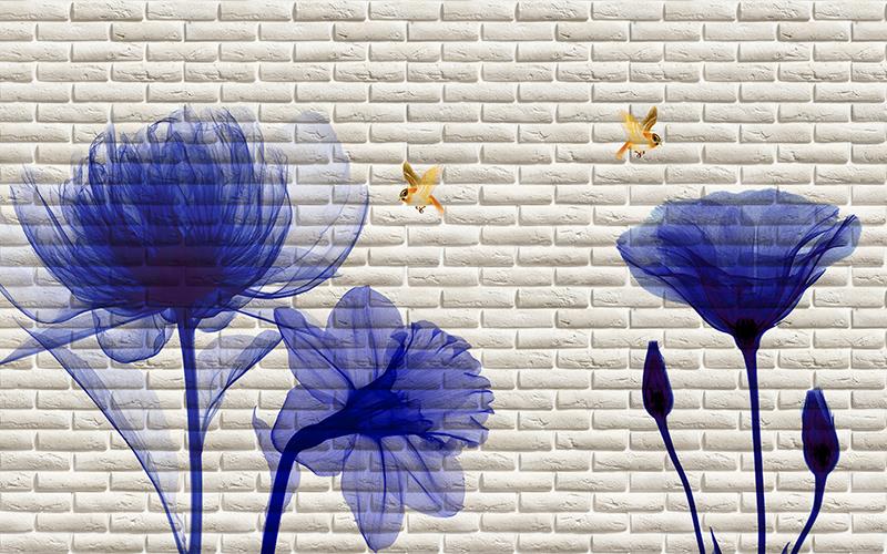 گلهای شفاف آبی با زمینه دیوار