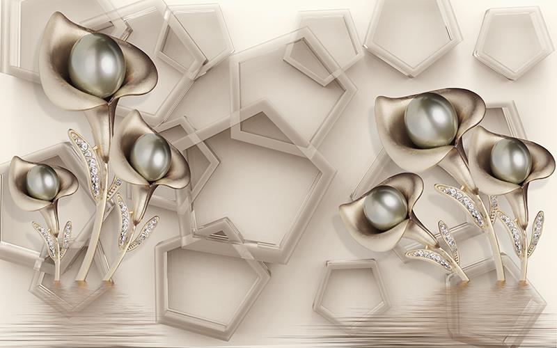 گلهای طلایی نگین دار و قوها با زمینه ساتن