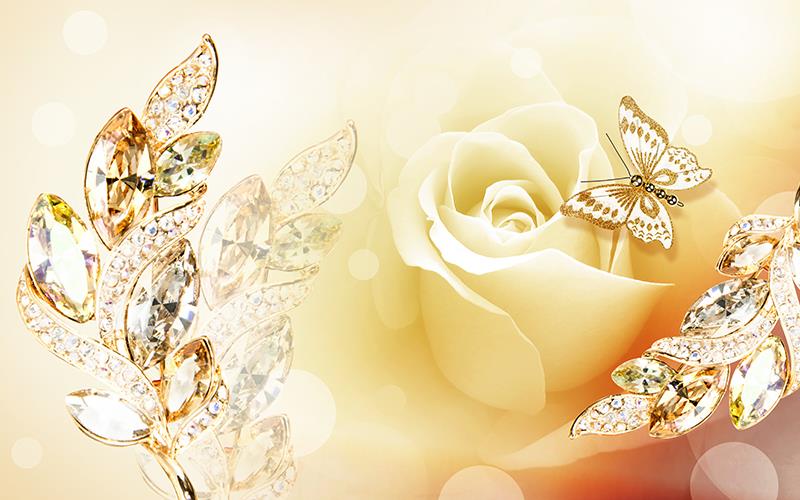 گلبرگهای نگین دار با زمینه رز زرد