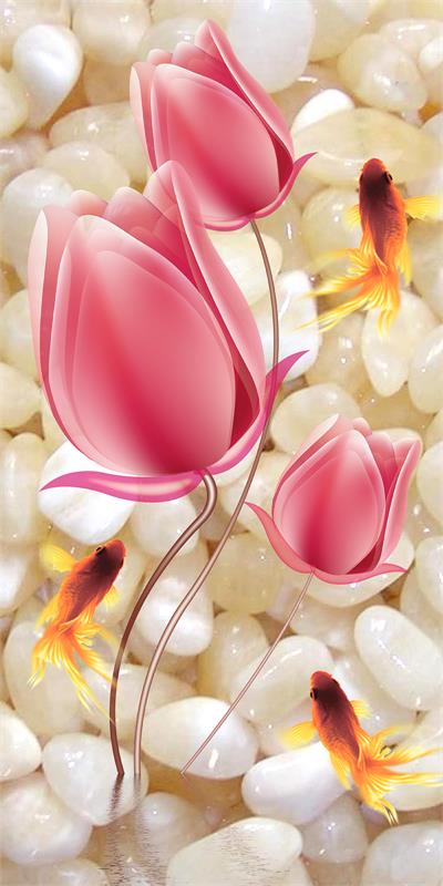 گل لاله صورتی و ماهی قرمز