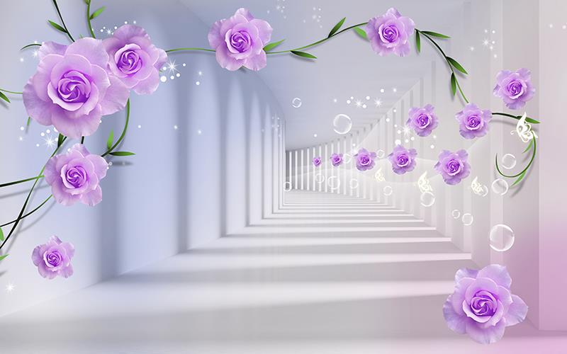 گلهای رز صورتی و یاسی با پروانه نگین دار