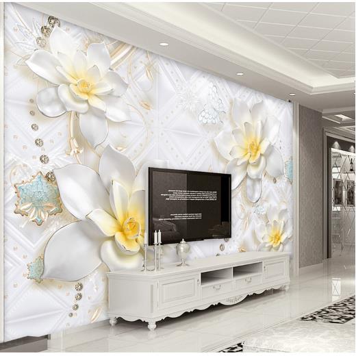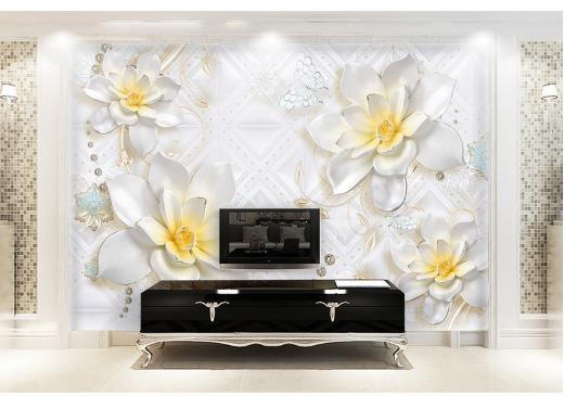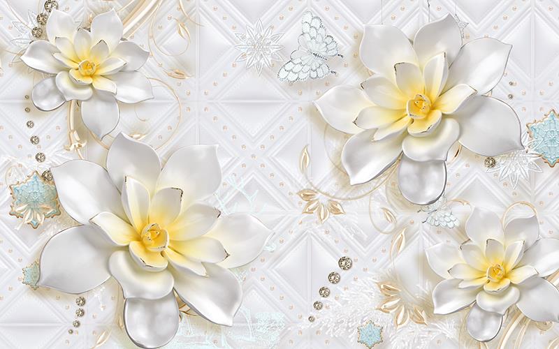 گلهای درشت سفید با زمینه کاغذ دیواری