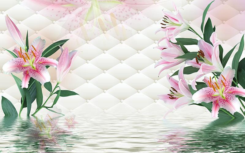 گلهای لیلیوم صورتی با زمینه لوزی