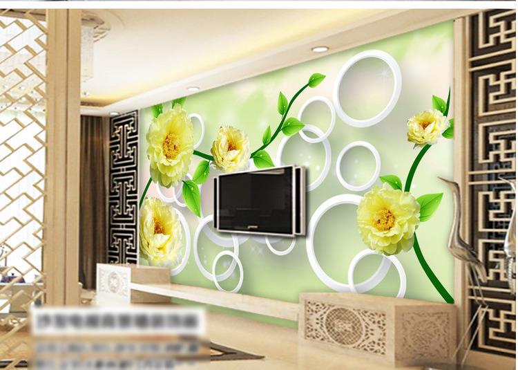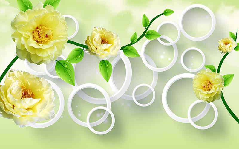 گلهای کاغذی زرد با زمینه حلقه ها