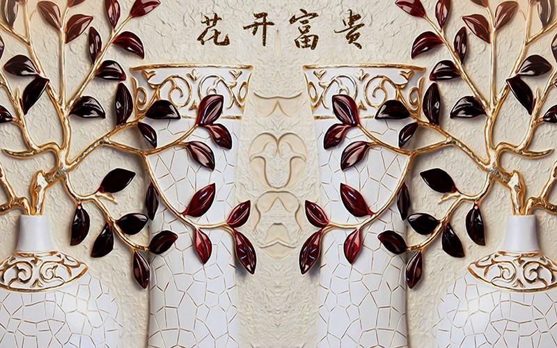 گل های پنج پر برجسته با برگ های طلایی