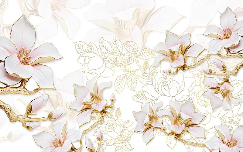 گل ها و پروانه های رنگارنگ با زمینه ساده