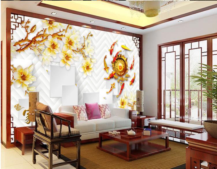 گلهای سفید سه بعدی با زمینه پتینه آبی